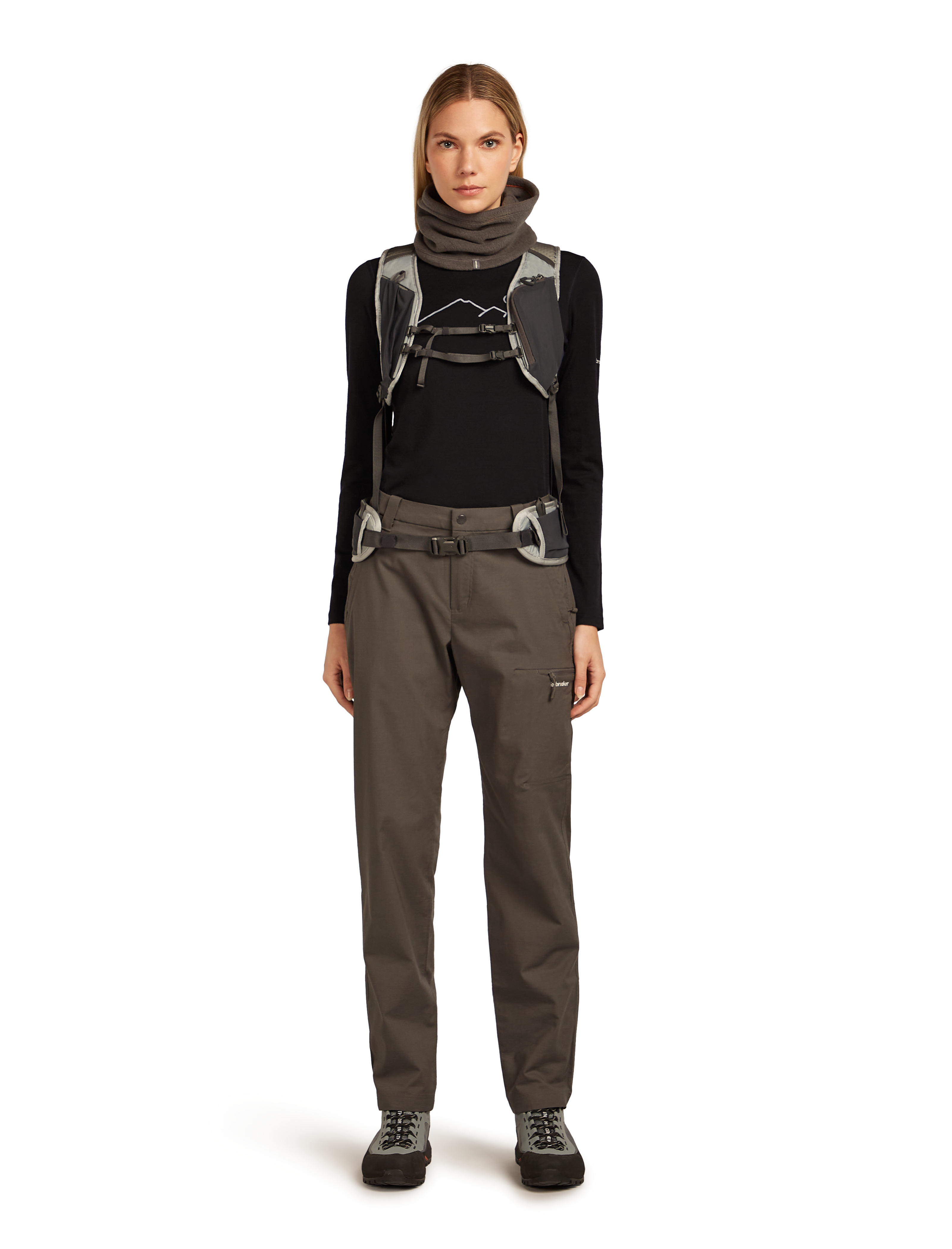 100% мерино материя – мека, лека и естествено устойчива на миризми; поддържа топлина, когато е студено, и прохлада, когато е топло
